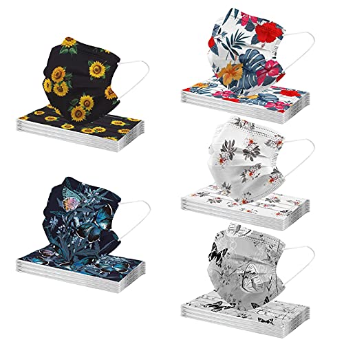Wtinfer 50 Stück Mundschutz Erwachsene Einweg 3-lagig mit Motiv Bunt Mund und Nasenschutz Print Tücher Atmungsaktiv Mund-Tuch Bandana Halstuch Schals für Männer Frauen