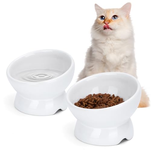 Folpus Dreifacher Katzennapf erhöhter Katzennapf Futter- und Wassernapf-Set für kleine Hunde Schwarz -