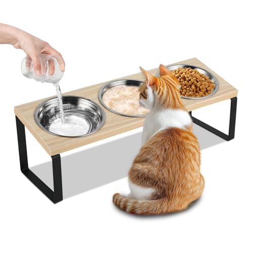 Erhöhter Futterständer für Katzenfutter mit 3 Schüsseln Beilagenteller mit dreifachen Schüsseln für verbesserte Verdauung Sturdy Raised Cat Feeder ideal für Zuhause Küche Schlafzimmer oder -