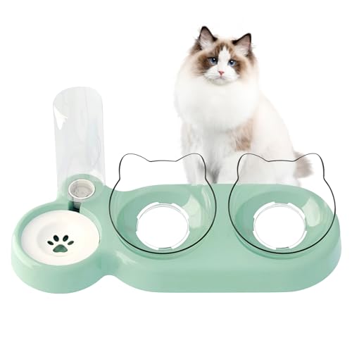 KiBcsLic Erhöhter neigbarer Katzennapf erhöhter Futter- und Wassernapf für Haustiere dreifach höhenverstellbar für den Haushalt GrÜn