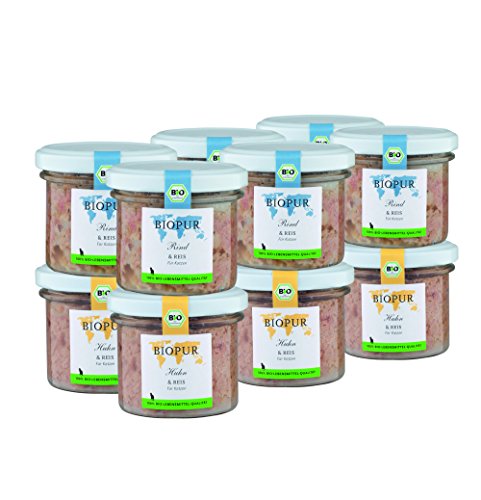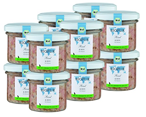 BIOPUR Tiernahrung Bio Katzenfutter Rind Reis für 12x100g -