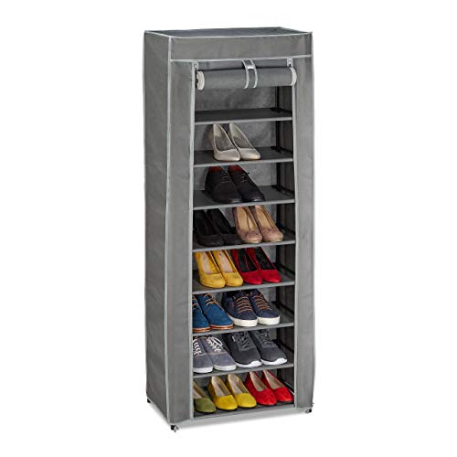 Relaxdays Schuhschrank Stoff 9 Fächer 36 Paar Schuhe Abnehmbarer Bezug Schuhregal HxBxT 158 x 86 x 30 cm anthrazit
