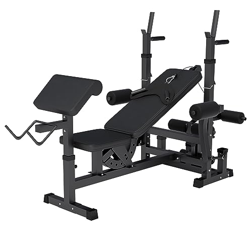 - ? GORILLA SPORTS KRAFTSTATION – mit verstellbaren gepolsterten Rückenlehn, höhenverstellbaren Langhantel-Ablage und dem Kombi-Hantelset mit Kunstoff Gewichten