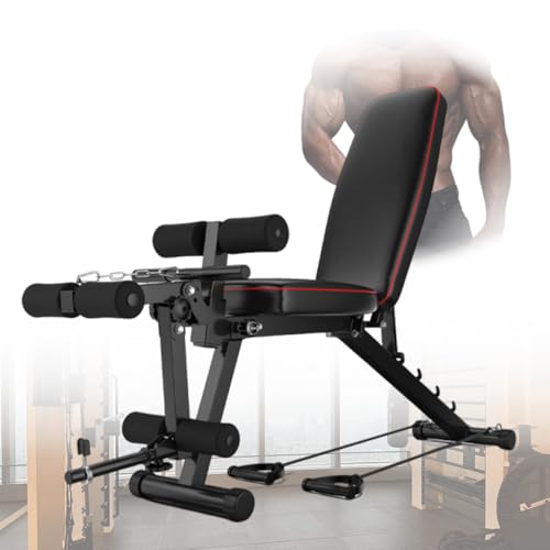 Hantelbank Klappbar Fitness Bank für Zuhause 200 kg strapazierfähig rutschfestes PU 3-stufige Beinrolle für Kurzhanteldrücken Ganzkörpertraining und Heimtraining